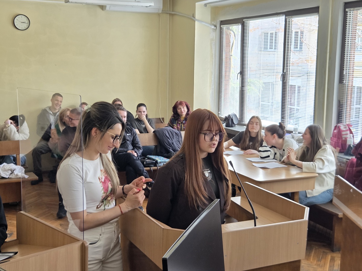 Учениците бяха посрещнати в една от съдебните зали от съдия Светла Пейчева, която разглежда наказателни дела в РС Дупница, от административния ръководител на РП Кюстендил, районният прокурор Албена Разсолкова, нейният заместник прокурор Николай Налбантов и прокурор Йорданова. В Денят на отворени врати учениците участваха в Симулативен процес, който завърши с Присъда, постановена от съдия / в ролята – Антонио Чакъров / и двама съдебни заседатели: Признава подсъдимата М. А. / на 18 г. / за виновна в това, че на 12.11.2025г. в КАТ Дупница при управление на лек автомобил, е нарушила правила за движение от Закона за движение по пътищата, а именно: чл.5, ал. 3, т. 1 от ЗДвП - на водача на пътно превозно средство е забранено да управлява пътно превозно средство под въздействие на алкохол, наркотици или други упойващи вещества; чл.20,ал.1 от ЗДвП-водачът е длъжен да контролира непрекъснато пътното превозно средство,което управлява и чл.20, ал. 2 от ЗДвП - водачът на пътно превозно средство е длъжен при избиране скоростта на движението да се съобразява с атмосферните условия, с релефа на местността, със състоянието на пътя и на превозното средство, с превозвания товар, с характера и интензивността на движението, с конкретните условия на видимост, за да бъде в състояние да спре пред всяко предвидимо препятствие; водачът е длъжен да намали скоростта и в случай на необходимост да спре, когато възникне опасност за движението и с това по непредпазливост и е причинил средна телесна повреда, изразяваща се в трайно затрудняване на движенията на десен долен крайник, на Е. П. от гр.Дупница вследствие фрактура на дясна бедрена кост, като деянието е извършено от М. А. в пияно състояние - с концентрация на алкохол в кръвта си 0.65 на хиляда, установено с техническо средство за установяване употребата на алкохол “Алкотест Дрегер 7510” и след употреба на наркотични вещества – „ Амфетамин ", установено с техническо средство Dreger Drug Test 5000 - престъпление по чл. 343, ал. 3, пр. 1, б. „А“, пр. 2 във вр. с ал. 1, б. “Б“, пр.2 във вр. с чл. 342, ал. 1, пр. 3 от НК.